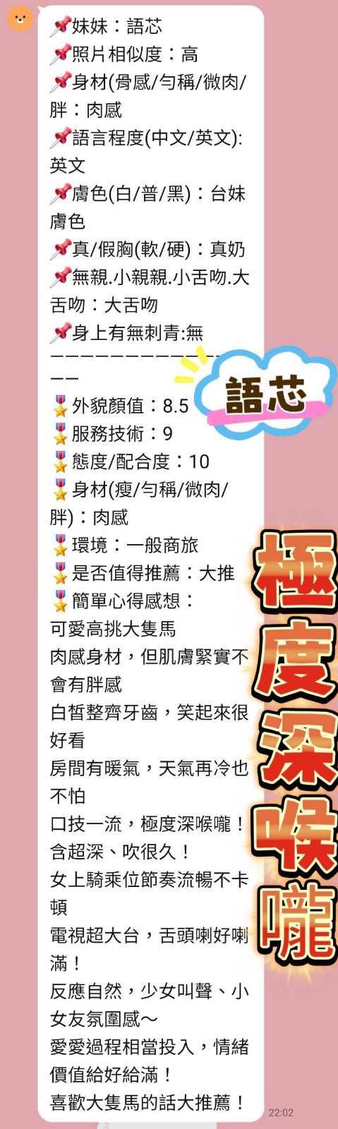 馬上約她 建議客戶提前一小時預約,臨時預約可能會遇到喜歡的女孩忙碌中 Line ID : xc833