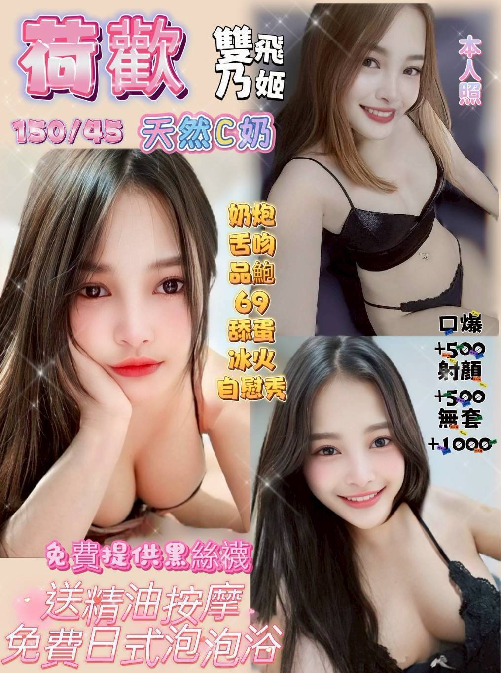 無套吹/戴套做/按摩/屁推/奶炮/舌吻/胸推/品鮑/69