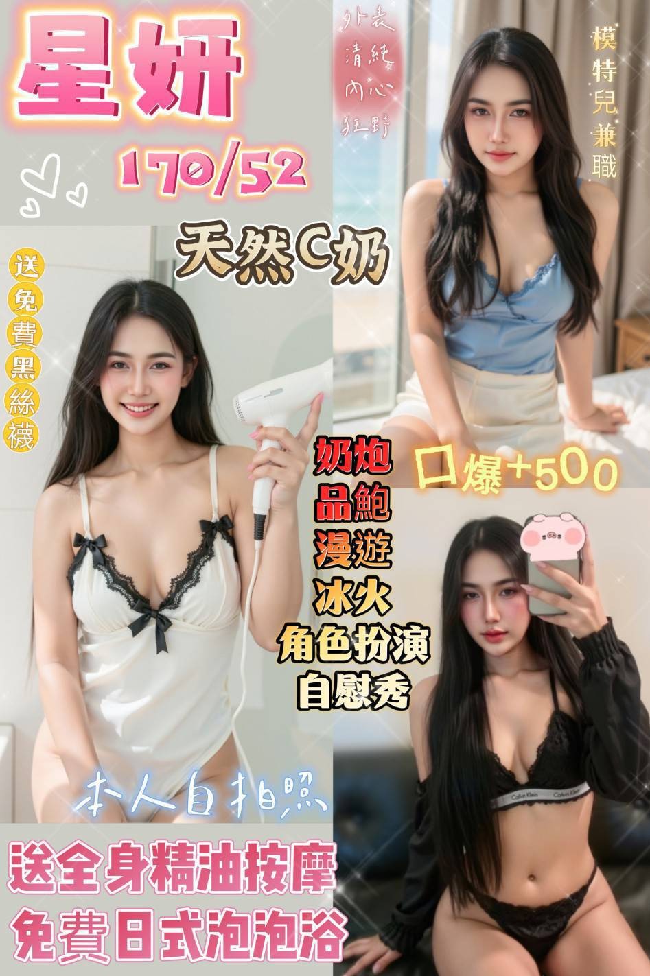 戴套做/無套吹/按摩/共浴/胸推/舌吻/奶炮/屁推/69/品鮑/冰火/漫游過水